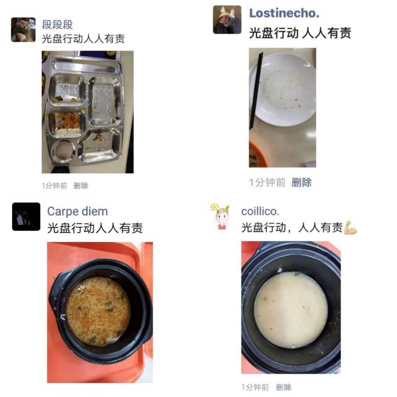 “一饭一粥当思来之不易,一丝一缕恒念物力维艰”,无论是点滴粥米,还是寸许宽面,从种子到供人享用充饥,经历了无数汗水的灌溉。倡导同学们进行“光盘行动”朋友圈打卡活动,培养其“厉行节约,反对浪费”的意识,在警戒自身的同时,呼吁更多的人参与这场厉行节约的行动中去。